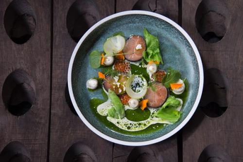 Cru Vin & Kjøkken offers a refined dining experience that blends Norwegian ingredients with British culinary influences. The restaurant features a rustic dining room upstairs, where guests can enjoy a five-course set menu with inventive touches, and a wine bar downstairs offering à la carte options ranging from snacks to full meals